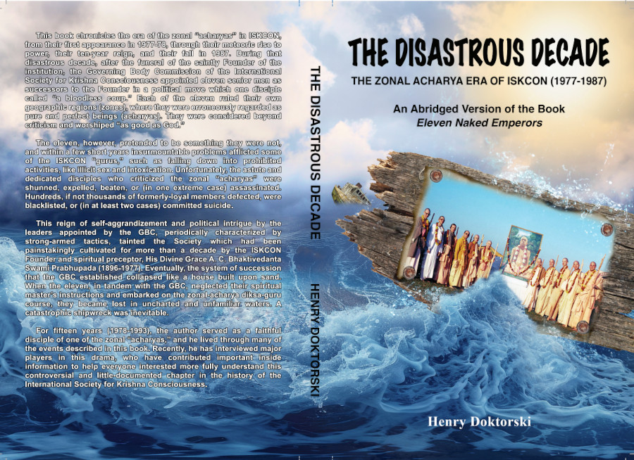 However some people, I have heard, are too busy or too intimidated to read a 545-page book about the zonal acharya era of ISKCON, therefore on the recommendation of several Krishna devotee friends—most notably His Grace Sriman Ram Parashar—I have condensed that book to only 160 pages: a 66% reduction. I hope that those who read The Disastrous Decade will continue their journey by reading Eleven Naked Emperors, which tells the same story, but in much more detail and subtlety.
