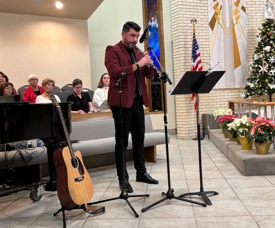 Mihail plays oboe in “Do You Hear What I Hear?”