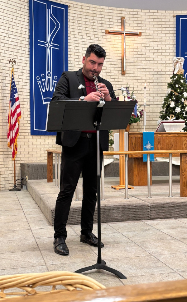 Music Director Mihail Christati plays “God Rest Ye Merry, Gentlemen,” on oboe.