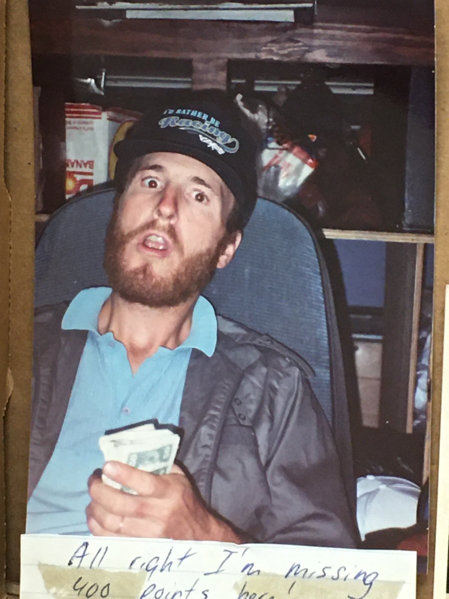 One of New Vrindaban’s biggest pickers, Bhaktisiddhanta dasa (William Crockett) in his sankirtan van.