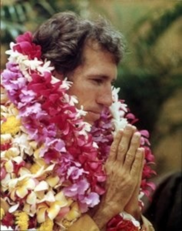 The ladies take off and find another motel, and I drift off to a peaceful and sound sleep. The next day—a beautiful sunny day—we work the football game, passing out Aloha Bowl bumper stickers to football fans, and collect a few thousand dollars in donations, which we dutifully cash in at a bank for a cashier’s check and mail it to Dharmatma, to help build New Vrindaban into a magnificent place of pilgrimage in the West. All in a days work for Krishna, in my opinion.