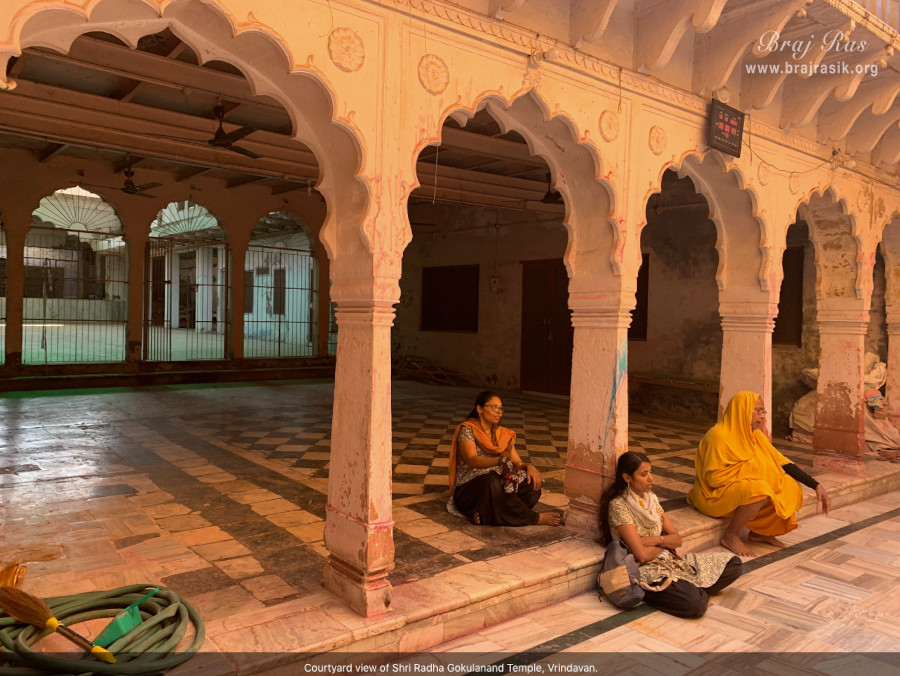 According to legend, it was here that Lord Krishna and his brother Balarama’s name giving ceremony was conducted. This took place in a cow shed lying in close proximity to the temple. A flight of stairs take you to the main entrance of the temple, which then opens to a large courtyard. Also in the temple is an altar for the goddess Yogamaya. There is a huge banyan tree in the courtyard and a temple of goddess Kali under the banyan tree. Devotees visiting the temple tie colored ribbons on its branches, in the belief that it will fulfill their wishes.