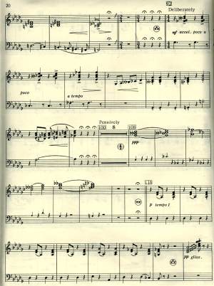 At measures 77 to 78, the accordion depicts the fan-shaped feathers of a peacock with an ascending glissando.