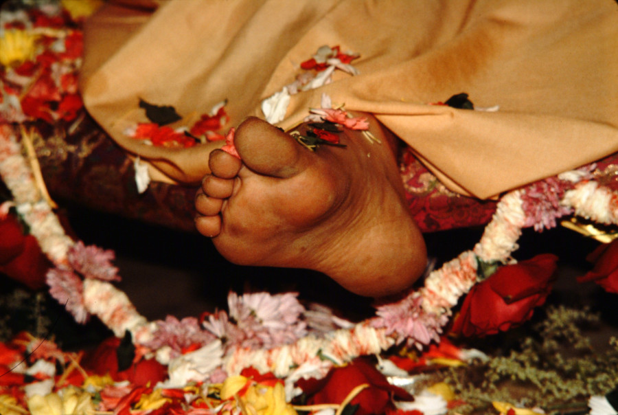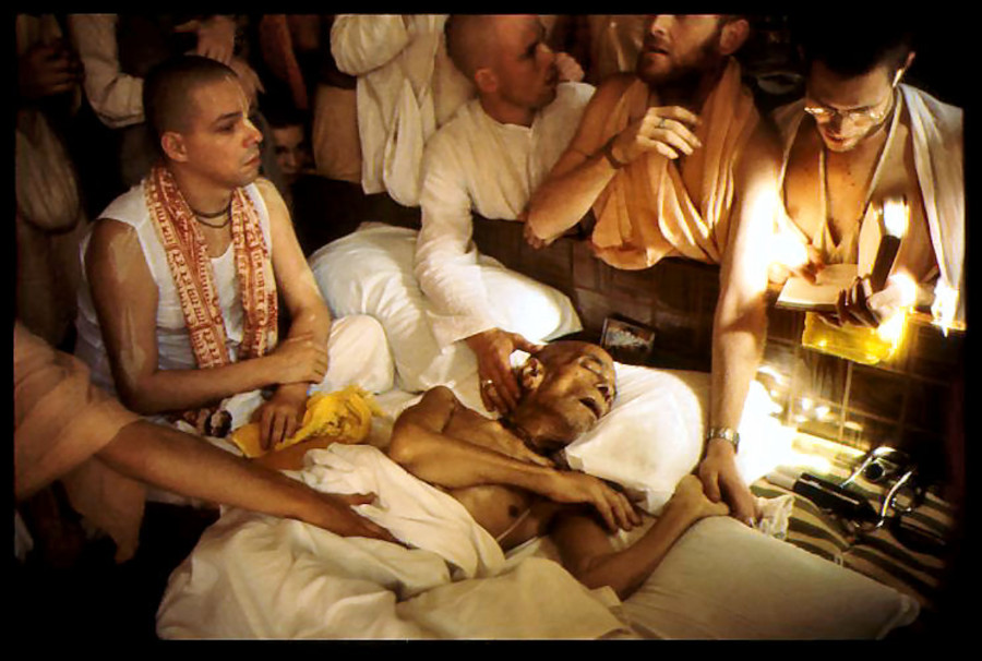 His Divine Grace Bhaktivedanta Swami Prabhupada prepares to leave his body.