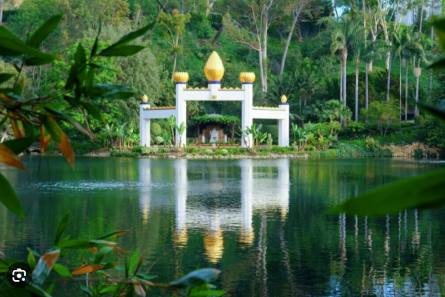 The Self-Realization Fellowship Lake Shrine was dedicated by Paramahansa Yogananda in 1950. Many thousands of visitors come each year to enjoy the scenic beauty and serenity of this spiritual sanctuary. The ten-acre site, with its natural spring-fed lake, includes: