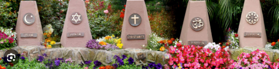 Monument honoring the world’s five major religions at Lake Shrine