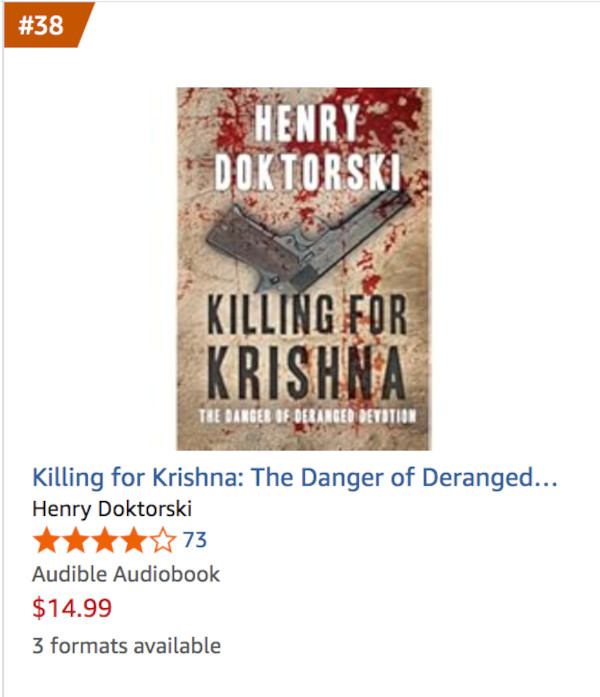 Killing For Krishna audio book No. 12 in Top 100 Amazon Best Sellers in History of Hinduism.