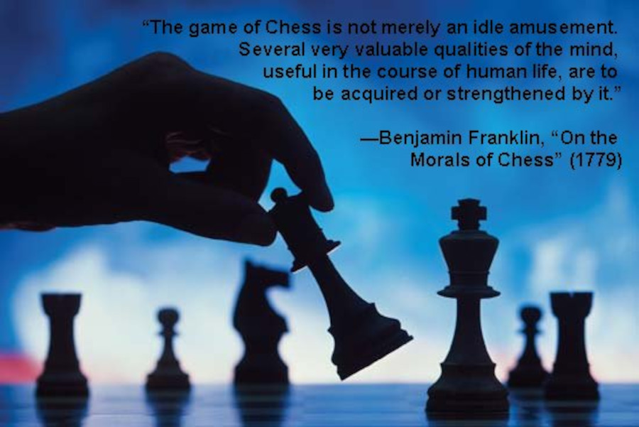 “The game of chess is not simply an idle amusement, several valuable qualities useful in the course of human life, are to be acquired or strengthened by it.”—Benjamin Franklin (1706-1790)